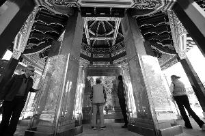 今天,蘭亭碑仍完好,字跡圖像清晰,八根柱石之蘭亭帖雖有風(fēng)化,但仍可辨讀。這座重檐八角的蘭亭碑亭,成為中山公園的重要景觀之一,同時也成為人們憑吊圓明園滄桑歷史的一件重要文物,碑上那些風(fēng)化了的字體,如同150年前“坐石臨流”的勝景一樣,若隱若現(xiàn)。