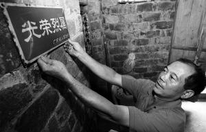 ?诃偵絽^(qū)龍寒村抗美援朝烈士吳業(yè)忠之子吳田川,展示政府頒發(fā)的光榮烈屬的牌匾。 海南日?qǐng)?bào)記者 李英挺 攝