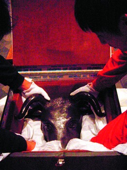 工作人員帶白手套裝箱
