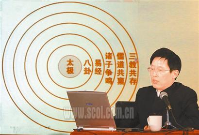 這場名為“太極圖、八卦探秘”的講座,吸引了300余名市民坐進“成都故事百家談”的現(xiàn)場。明賜東的開場白就讓市民震驚:“產(chǎn)生于6000多年前的太極圖是中國的第一發(fā)明,早于四大發(fā)明3000多年,它是中國文化的始祖,中華民族的象征。絕對不僅僅是很多人片面錯誤認為太極、八卦只是算命的徽記和符號。”