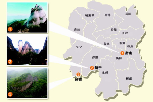 湖南衡山,崀山、萬佛山分別參加“五岳”、“中國丹霞地貌”捆綁申遺。制圖/龔萬里