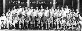 一個月后,我所在的經(jīng)濟系四年級同學即將畢業(yè)。大家懷著對新上任的馬校長和全系教師依依不舍的惜別之情,提出邀請馬校長和全系教師同我們一起合影。7月1日,在孑民堂前,中國照相館的高級技師為我們精心地拍攝了一張畢業(yè)紀念照。在北大一百周年校慶舉辦的校史展覽會上和新成立的校史館里,都將這張照片放大展出,十分引人注目。