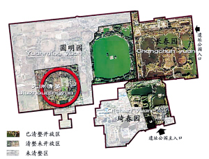 據(jù)中國圓明園學會副會長、清華大學建筑學院教授郭黛姮介紹,該園當時之所以沒有對外界開放,主要是因為破壞最為嚴重,除了遭受當年的兵火之災(zāi)外,之后一直到“文革”期間的盜砍樹木,盜采古跡石料,填湖造田等破壞,以及當時大量的居民住戶尚未拆遷,使最為經(jīng)典的圓明園一隅已無“景觀”可看!斑@也是當時遺址公園逐步開放了長春園、綺春園、福海等景區(qū),對外惟獨沒有開放圓明園全部的原因!