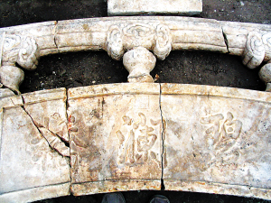 據(jù)他介紹,在圓明園中目前已經(jīng)使用的修復方式還體現(xiàn)在對含經(jīng)堂的保護上。這也是一種傳統(tǒng)的有效方法。就是用一些整理出的殘余構件,把遺址的“臺子”等基礎搭建出來。不再做任何破壞人為景觀的復建。