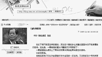 賈平凹跟陳忠實(shí)的遭遇相同!熬W(wǎng)站編輯事前給我打過(guò)電話,說(shuō)要把我的那篇文章放到網(wǎng)上去,但沒(méi)說(shuō)是開(kāi)博客,現(xiàn)在我已叫他們把博客關(guān)了!辟Z平凹告訴記者。