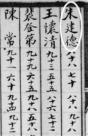 在 《四川省城高等學(xué)堂體育學(xué)堂甲乙兩班學(xué)生積分表》上,記者找到了朱德的學(xué)習(xí)成績(jī)記錄,不過(guò)成績(jī)單上使用的名字是朱建德。這份成績(jī)單共列出了朱德修身、國(guó)文、教育、心理、生理、兵學(xué)、器械等13門(mén)學(xué)科的成績(jī),其中器械課的成績(jī)最好,達(dá)到滿分一百,心理課成績(jī)也有98分。全班52人中,朱德的總成績(jī)位居第10名。