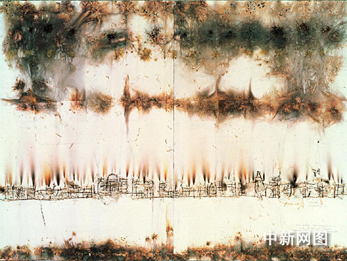 2001年10月,蔡國(guó)強(qiáng)為當(dāng)時(shí)在上海舉行的“亞太經(jīng)合組織會(huì)議”(APEC),動(dòng)用了超過(guò)26,000 枚煙花火藥,上演了長(zhǎng)達(dá)20分鐘的煙火爆破,獲得國(guó)內(nèi)外的高度贊揚(yáng)。本次拍賣推出的《APEC景觀焰火表演十四幅草圖》,正是他在上海APEC爆破后,在宣紙上以爆破方法再現(xiàn)當(dāng)晚景況而創(chuàng)作的十四幅草圖。