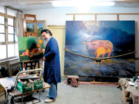 楊大味告訴記者,今年海淀區(qū)要成立一個藝術(shù)園區(qū),要他們搬過去。已經(jīng)同他說了好幾次!八囆g(shù)家們不是沒有選擇。之所以至今還沒人離開宋莊,是因為宋莊凝聚了我們太多的堅持,每個人都會對這種堅持抱有依戀。”晨報記者 鄒樂文并攝
