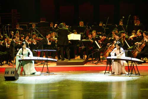 近日來,這些活躍于國際樂壇、享有極高聲望的華人音樂家在國家大劇院內(nèi)進(jìn)行了緊張的彩排。黃英的《春江花月夜》、殷承宗的鋼琴協(xié)奏曲《黃河》,齊•寶力高的《心靈之歌》,袁莉袁莎姐妹的古箏曲目《漁舟唱晚》響徹國家大劇院的歌劇廳,激蕩人心。本次音樂盛典的一大特色是“中國旋律,西式演繹;傳統(tǒng)藝術(shù),現(xiàn)代表現(xiàn)”,這在連續(xù)兩日袁莉袁莎姐妹古箏演奏中得到了極好的體現(xiàn)。她們表示,古箏是中國的傳統(tǒng)樂器,但這一次就與交響樂合奏,擴(kuò)大了傳統(tǒng)的舞臺,可以使更多的觀眾了解接受欣賞這一藝術(shù)。是一項(xiàng)很好的嘗試。在排練的同時(shí),這些藝術(shù)家們,時(shí)刻不忘災(zāi)區(qū)。他們多次詢問災(zāi)區(qū)的情況,關(guān)注還在返鄉(xiāng)途中的同胞。不管他們能否有機(jī)會聽到這些音樂,都希望音符的傳揚(yáng)可以給他們帶去力量和希望。