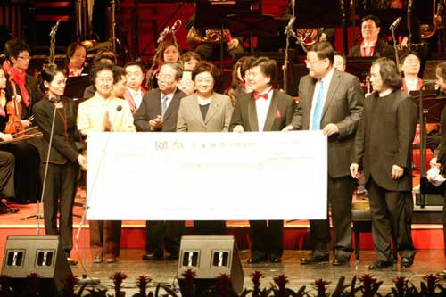 全場的最高潮無疑是3家主辦方?jīng)Q定將門票收入所得共103.9720萬元票款的支票交到中華慈善總會(huì)代表的手中,委托其捐獻(xiàn)給受雨雪災(zāi)害最嚴(yán)重的湖南、貴州、廣西等省區(qū)市時(shí),觀看演出的觀眾紛紛起立,掌聲如雷鳴般鼓動(dòng)。