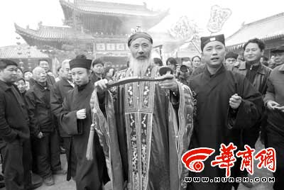 春盈天地,道貫古今。17日,整修一新的西安都城隍廟內(nèi),鼓樂爭鳴、人頭攢動,作為此次城隍廟春節(jié)大廟會系列活動的高潮之一,城隍廟祈福法會昨盛大舉行,中國道教協(xié)會會長任法融親自主持,與數(shù)萬市民一起共同迎福,恭祝和諧,祈福迎祥,茹桂、李成海、冀福紀等知名文化人也應(yīng)邀參加了此次盛典。昨日(17日)下午,西安市副市長黃省身也來到現(xiàn)場,對城隍廟如何“做到最好”提出了建議。