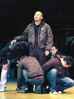 在片場以嚴(yán)厲著稱的尹導(dǎo)在排練場上也不改其作風(fēng),一會(huì)兒忙著指揮工作人員在每個(gè)確定走位處貼上地標(biāo),給每樣道具的位置做標(biāo)記,一會(huì)兒吆喝兩句“精神集中,每一遍都有新要求……”難怪在談到導(dǎo)演時(shí),韓童生毫不諱言:“尹導(dǎo)就像一個(gè)幽靈、魔鬼,他的嚴(yán)格帶給我巨大的壓力,每天的排練都很痛苦,在這種窒息的環(huán)境中我們要做到的就是靈魂出竅!碑(dāng)然,在演員表現(xiàn)精彩的時(shí)候,尹力也會(huì)拿起相機(jī)一陣狂拍,并不時(shí)要求全場演員鼓掌慶賀;而當(dāng)演員表演達(dá)不到要求時(shí),尹導(dǎo)更是親自做起了示范,其生動(dòng)的肢體語言不時(shí)引起全場的爆笑。