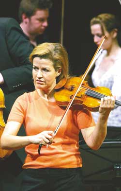 昨晚,享譽(yù)世界的“小提琴女神”安妮-索菲·穆特首次登臺國家大劇院,與來自挪威的特隆赫姆獨(dú)奏家樂團(tuán)合作演出。在演出結(jié)尾,她加演了巴赫的《G弦上的詠嘆調(diào)》,將對四川地震災(zāi)區(qū)的祝;髁耸嵍烂畹囊舴。
