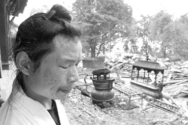 圖為震后在都江堰二王廟景區(qū),一位道士痛苦地面對廢墟(資料圖片)