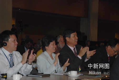 中國“福建土樓”被正式列入《世界遺產(chǎn)名錄》后,各國代表向中國表示祝賀。作者:章聞