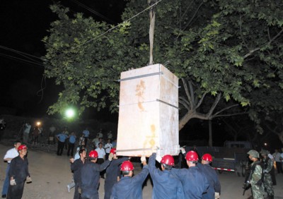 昨日記者獲悉,南京大報(bào)恩寺“謎中之謎”——地宮鐵函在眾多持槍武警的護(hù)衛(wèi)下,于27日晚起吊出地宮,運(yùn)回南京市博物館。南京博物院文物保護(hù)專(zhuān)家奚三彩、中國(guó)考古學(xué)會(huì)理事長(zhǎng)徐蘋(píng)芳等國(guó)內(nèi)專(zhuān)家已陸續(xù)到來(lái),近期將集體對(duì)神秘鐵函的開(kāi)啟制定出方案。