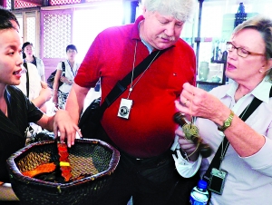 文化展開展首日就迎來不少什剎海地區(qū)的居民和外國(guó)游客,一對(duì)來自美國(guó)的夫婦對(duì)老物件十分感興趣,不時(shí)摸摸這個(gè),試試那個(gè),還坐上太師椅過了一回“主人癮”。記者與他們交談得知,這對(duì)美國(guó)夫婦是本屆奧運(yùn)會(huì)女子100米仰泳銅牌獲得者瑪格麗特·赫爾策的父母。漢斯·赫爾策先生告訴記者,他們看完女兒的比賽便開始游覽北京,第一站來到什剎海就碰上了如此精彩的文化展覽!芭畠哼在備戰(zhàn)本周末的比賽,等比賽結(jié)束我們一定會(huì)帶她過來!睗h斯·赫爾策說。