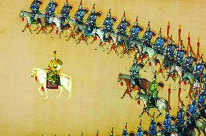 一幅描繪乾隆皇帝即位后首次在南苑檢閱兩萬八旗兵盛況的清宮畫卷——《大閱圖》第三卷《閱陣》,即將于下月初在香港拍賣。據(jù)悉,《大閱圖》由當(dāng)時(shí)十余位宮廷畫家聯(lián)袂繪制,長(zhǎng)達(dá)15米,全部四卷共繪有一萬六千名士兵;此次拍賣的雖然只是四卷中的一卷,但因?yàn)樵摦嫶媸纼H剩兩卷,另一卷被故宮收藏,專家為《閱陣》給出的估價(jià)依然高達(dá)8000萬港元。
