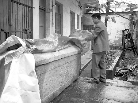 “石棺長期被埋藏在地下,一旦與空氣接觸,日曬雨淋,石棺很快會被風化,其石刻也會變得模糊不清!敝T能清也對石棺的現(xiàn)狀非常擔憂!拔奈镓溩拥谋I賣和當?shù)貨]有文物保護意識的村民對石棺的損壞也非常嚴重!辟Z雨田說,由于合江石棺名聲在外,一些文物販子想方設法都在打它的主意!扒懈詈辖咨弦粔K有石刻畫像的石板,在黑市上能賣到30萬元,而一具完整的石棺至少能賣到百萬元以上!辟Z雨田說,文物販子盜賣石棺的事件在當?shù)貙覍野l(fā)生。