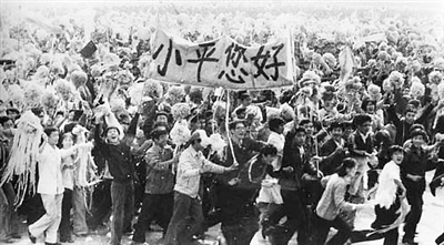 過了幾天,據(jù)說有新華社記者來北大生物系采訪我們,老師一時(shí)很緊張,后來記者對(duì)他們說這是一件好事。那時(shí)信息不像現(xiàn)在這么快,后來才得知10月2日人民日?qǐng)?bào)第二版刊登了我們舉著“小平您好”橫幅的照片,是人民日?qǐng)?bào)攝影記者王東老師拍攝的。至此,我們心里才踏實(shí)下來。