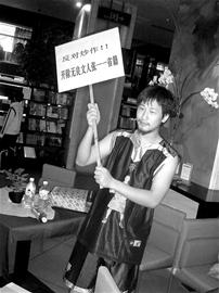 座談會進行了一個小時左右,還算順利,但接下來的簽售環(huán)節(jié)卻出現(xiàn)了一個小插曲,“大概簽了有十多分鐘時,我聽到場上有人在笑,原來是有人在我身后舉著‘反對炒作!開除無良文人張一一省籍’的牌子以示抗議,但這并未影響我的心情!睆堃灰徽f。