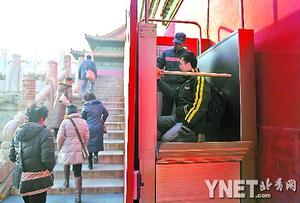 讓故宮的工作人員引以為豪的,是分別設(shè)在保和殿東側(cè)和午門西馬道上的兩臺垂直升降機(jī)。負(fù)責(zé)保和殿東側(cè)升降機(jī)使用的工作人員說,升降機(jī)的使用頻率很高,平均每天會有四五十位游客使用升降機(jī)。在奧運(yùn)會時,最多的一天有超過200名游客使用升降機(jī)。