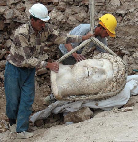 在2007年,一臺挖掘機(jī)在工作中得到了一個意外發(fā)現(xiàn),考古學(xué)家在土耳其中部的考古挖掘中發(fā)現(xiàn)了巨型羅馬帝王大理石人首。