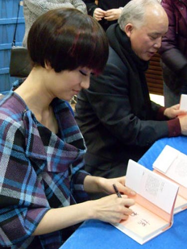昨天的簽售會原定下午2點舉行,但到了中午12點左右已經(jīng)有大量尚雯婕粉絲早早買了小說排好隊,出版社帶來的1000本小說也很快告罄。十分繁忙的尚雯婕原計劃只簽售半個小時,最后因為讀者和粉絲實在太多,最后簽售活動一直持續(xù)了近2個小時。在簽售現(xiàn)場,一位中年女粉絲說自己從早上9點40分就已經(jīng)守候在上海書城門口等開門,她和其他幾位粉絲中午就啃著大餅將就。不過令尚雯婕欣慰的是,許多她的粉絲不僅僅是來見偶像、簽名而已,好幾位粉絲都對早報記者說,借著尚雯婕的號召力,一定要好好閱讀這部小說。