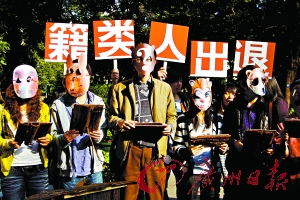 昨日下午2時(shí)30分許,行為藝術(shù)家流野、黎永泰等帶領(lǐng)40余人在廣州人民公園舉行儀式,宣布“退出人類籍”,并表演了“退人類操”。他們還選出10個(gè)退出人類后甘愿進(jìn)化為動(dòng)物的先進(jìn)分子進(jìn)行了宣誓。誓詞的大意為:我甘愿退出人類籍,順應(yīng)天理,遵守大自然的規(guī)律與公道,執(zhí)行造化的暗示,正義地反對(duì)人類為所欲為的戰(zhàn)爭(zhēng)、掠奪與虛偽,為宇宙、自然界的真正和諧解放而奮斗終身!此舉引來數(shù)百人聚集圍觀,公園方面如臨大敵,派出保安現(xiàn)場(chǎng)維持秩序。儀式結(jié)束后,40余個(gè)宣稱已經(jīng)是動(dòng)物不是人類的行為藝術(shù)家,還舉著“退出人類籍”牌步行15分鐘,到附近菜市場(chǎng)慰問了待宰的動(dòng)物,表示慰問和默哀。