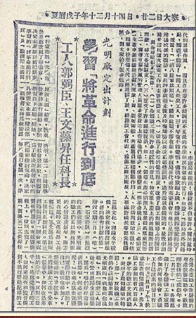 4.1949年1月12日《人民日報(bào)》第3版刊登的報(bào)道:光明廠定出計(jì)劃,學(xué)習(xí)《將革命進(jìn)行到底》