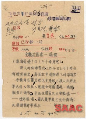 3.1949年1月10日,淮海前線關(guān)于淮海戰(zhàn)役結(jié)束的電報(bào)