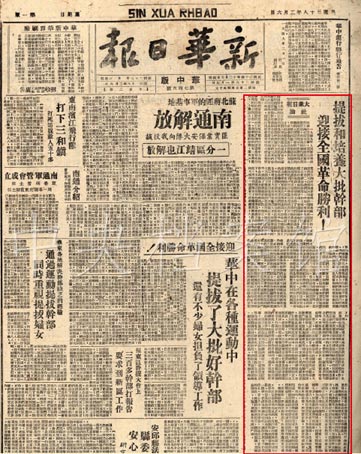 1.1949年2月6日,《新華日?qǐng)?bào)》轉(zhuǎn)載的社論:《提拔和培養(yǎng)大批干部迎接全國革命勝利》