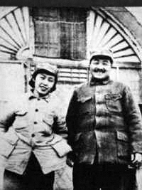 1938年雙十節(jié),由王明的夫人孟慶樹介紹(一說陳賡介紹),40歲的八路軍副總司令彭德懷,在延安娶了北師大著名的浦氏三姐妹(潔修、熙修、安修)中的小妹、20歲的嘉定姑娘浦安修(1918-1991),婚后無子女,但共度戰(zhàn)爭歲月,感情甚篤。廬山會議后,浦安修幾經(jīng)斟酌,終與彭德懷在60年代脫離關(guān)系。當(dāng)時老彭切開一個大梨,二人各吃了一半。