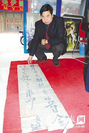 在北京前后呆了十多天,他們請教了故宮博物院六位字畫專家,對方以岳飛是否有真跡留存于世還存在爭議為由沒有貿(mào)然作出判斷,但他們建議杭從明帶字畫到中國歷史博物館先進行紙張甄別。在中國歷史博物館,專家對字畫的棉麻紙張進行了碳化測定,初步確認該紙張產(chǎn)自宋代。至于是否為岳飛真跡,專家也無法確定。昨日江都市博物館夏根林館長表示,通常情況下,只要紙張確認為宋代,那么是岳飛真跡的可能性就相當(dāng)大了,現(xiàn)在鑒定界也有從紙張的風(fēng)化程度來確認是否真跡的先例。從另外一個角度講,眼下市場上即使是五尺的清代空白紙張,價值也達數(shù)千元,更何況宋代的紙張了。