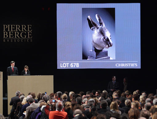 是晚,在巴黎大皇宮舉辦的“伊夫·圣洛朗與皮埃爾·貝爾熱珍藏”專場(chǎng)拍賣會(huì)上,編號(hào)為六七七和六七八的圓明園鼠首和兔首銅像分別以一千四百萬(wàn)歐元被買家通過同一電話代理人買走。