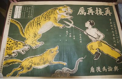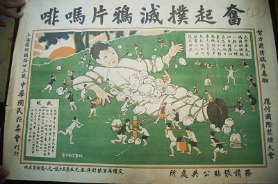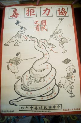 在檔案館此次展示的檔案中,有四張招貼畫(huà)十分引人注目,在其中的一張招貼畫(huà)上,一個(gè)孩子被各種毒品團(tuán)團(tuán)綁住,動(dòng)彈不得,周?chē)鷦t是一些運(yùn)送、販賣(mài)毒品的場(chǎng)景,“這個(gè)孩子,指的其實(shí)是當(dāng)時(shí)的中國(guó)!边@四張招貼畫(huà)曾在1927年被張貼于上海的大街小巷,“在萬(wàn)國(guó)禁煙會(huì)之前,上海民間的禁毒行動(dòng)就一直存在,之后,更加是引起了一股禁毒的思潮。坐落于圓明園路的中華國(guó)民拒毒會(huì)就是一個(gè)典型的民間組織,雖然成立于1920年代,但和這股思潮是分不開(kāi)的!毙辖ㄩ沤榻B,當(dāng)時(shí)的拒毒會(huì)除了張貼招貼畫(huà)、舉辦各種公益的講座之外,還曾經(jīng)組織運(yùn)動(dòng)會(huì),用健身的理念來(lái)抗拒毒品的誘惑。