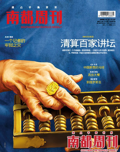 易中天先生接受了《新周刊》的專訪,在這篇“呈堂證供”里不僅點(diǎn)名提到了《南都周刊》,還表達(dá)了他對《南都周刊》于2008年11月21日刊發(fā)的《清算百家講壇》報(bào)道的強(qiáng)烈不滿。