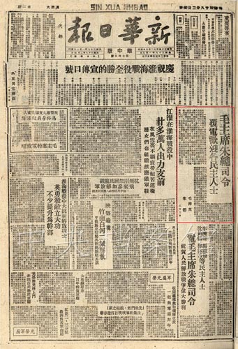 3.1949年2月5日,《新華日報》發(fā)表的毛主席朱總司令歡迎各民主人士的復(fù)電