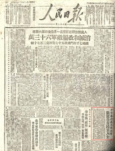 5.1949年3月1日,《人民日報》關(guān)于北平舉行盛大歡迎會歡迎各方民主人士的報道