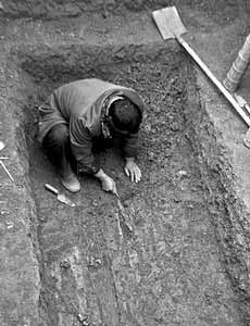 墓葬群位于南陽市八一路和文化路交叉口的東南角,現(xiàn)在是南陽市商貿(mào)中心的建設(shè)工地,共有50座墓葬在此,埋葬的是低級(jí)貴族或高等武士。去年12月,南陽市文物考古研究所在這里進(jìn)行文物勘探時(shí),發(fā)現(xiàn)了這些墓葬,并于今年1月8日開始發(fā)掘。