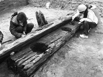 昨(3)日,在現(xiàn)場負(fù)責(zé)發(fā)掘的考古人員張擎帶領(lǐng)下,記者進(jìn)入了考古現(xiàn)場,映入記者眼簾的是一些橫木和柱子。保存較為完整的一根柱礎(chǔ)底板長3.4米、寬0.45米、厚0.3米,其上有4個(gè)圓形柱洞,最高的一根立柱,高1.4米、最大直徑0.3米。這都是些什么呢?“這可是本次發(fā)掘的最大發(fā)現(xiàn),超長的豪華漢代廊橋!”張擎激動(dòng)地說,“從木橋的結(jié)構(gòu)和古河道內(nèi)出土的遺物推測,這座木橋是漢代典型的建筑,結(jié)構(gòu)與2001年在金沙遺址蘭苑地點(diǎn)發(fā)現(xiàn)的漢代木橋完全相同,民間又叫它‘風(fēng)雨橋’!