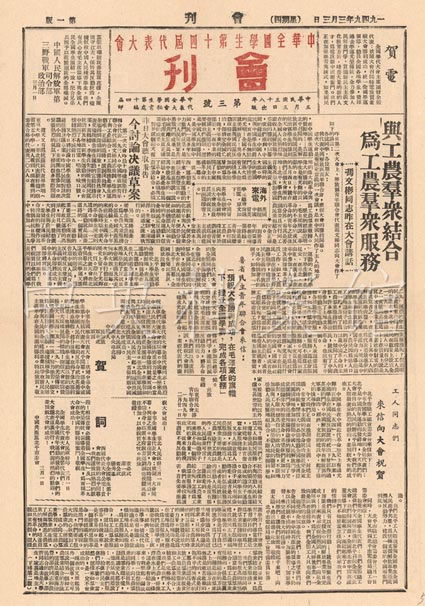 4. 1949年3月3日,中華全國學(xué)生第十四屆代表大會(huì)會(huì)刊