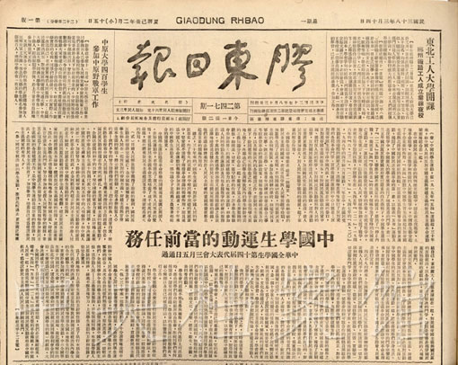 9. 1949年3月14日,《膠東日?qǐng)?bào)》發(fā)表的中國學(xué)生運(yùn)動(dòng)的當(dāng)前任務(wù)