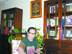 在整個(gè)采訪過程中,葉曼先生娓娓而談,時(shí)而親歷故事感人,時(shí)而詩詞典故連綴古今。當(dāng)記者問到葉曼先生的養(yǎng)生秘訣時(shí),她說,一是吃素,二是能常常為人著想,站在對(duì)方的角度想問題,原諒人就很少生氣;三是多一點(diǎn)好奇心,好比孩子。老想當(dāng)年勇那是老年的毛病。