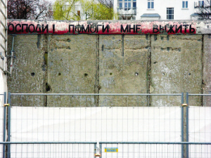 作為目前柏林墻殘余最長的一段,“東區(qū)畫廊”上覆蓋著各式各樣的涂鴉作品。當(dāng)年,弗魯貝爾和其他117名來自21個國家的藝術(shù)家在1316米長的墻面上留下了涂鴉,他筆下著名的“兄弟之吻”根據(jù)1979年前蘇聯(lián)領(lǐng)導(dǎo)人勃列日涅夫和民主德國戰(zhàn)友埃里!ぐ杭{克會面時的一張照片繪制而成。