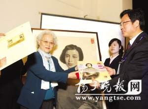儀式結(jié)束后,烈士家屬們共同來到雨花臺烈士紀念館參加座談會,參加活動的烈士家屬中,有來自北京的劉愛琴老人。她是共和國主席劉少奇的女兒,她的母親就是長眠在雨花臺的何寶珍烈士。昨日,她將母親的一幅巨型畫像捐贈給了雨花臺。