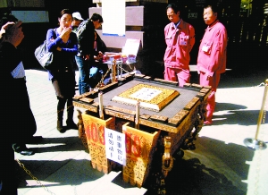 昨日上午12時許,北三環(huán)陽光麗景小區(qū)南門外,不少路人被擺放在小區(qū)門口的奧運缶所吸引。原來,這是自稱中國金銀幣禮品網(wǎng)的幾名員工沿街叫賣奧運缶。但不少市民認為,賣缶人員私自占用公共場所,影響大家的出行。至下午3時許,物業(yè)人員強制將對方驅離。