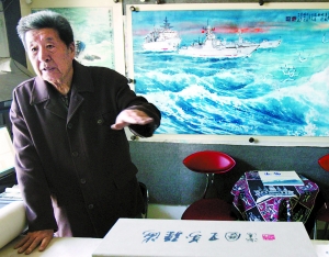 時(shí)值海軍成立60周年,78歲的李海濤向本報(bào)展示他40年來(lái)所畫(huà)的海洋圖,包括《萬(wàn)國(guó)海疆圖》和海軍赴索馬里出征圖。李海濤回憶,曾經(jīng)有一位普通的海軍士兵看完他的畫(huà)說(shuō):“60年前的我們有海無(wú)防,但我們有這么美麗的海,可以來(lái)保衛(wèi)它,是一種驕傲。”