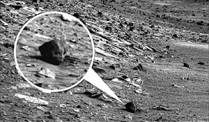 火星愛好者最近在NASA網(wǎng)站上發(fā)現(xiàn)了一張“勇氣號”火星車傳回來的火星照片,這張火星照片頓時紅遍了互聯(lián)網(wǎng),因為這張清晰的照片上,竟有一個模樣古怪、酷似人狀“頭顱”的石頭!