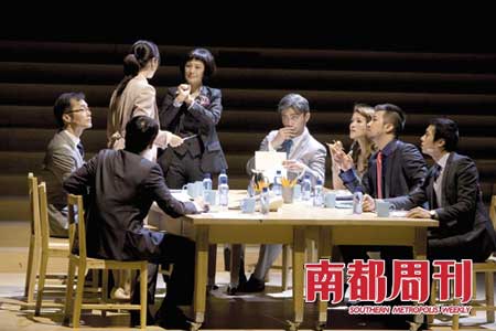 林奕華:5·12地震后,我跟張艾嘉聊天,提到我在內(nèi)地巡演時(shí),看到許多二線城市都在“追”建筑、城市建設(shè)等,要把它弄得更像一個(gè)一線城市。大家都覺得城市好,因?yàn)榭梢赃_(dá)成許多事情。我們想要達(dá)成什么?那就是我們的欲望。當(dāng)欲望不容易實(shí)現(xiàn)時(shí),就產(chǎn)生焦慮和不安全感。地震來(lái)了后,大家開始反省城市是否應(yīng)走得那么快。這是個(gè)很城市化的問(wèn)題,而城市里上班族最多。其實(shí),上班族在這部戲里也是一種比喻,不完全是針對(duì)上班族這群人,而是指現(xiàn)代人,探討城市人為什么會(huì)生活得不快樂(lè)。